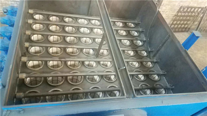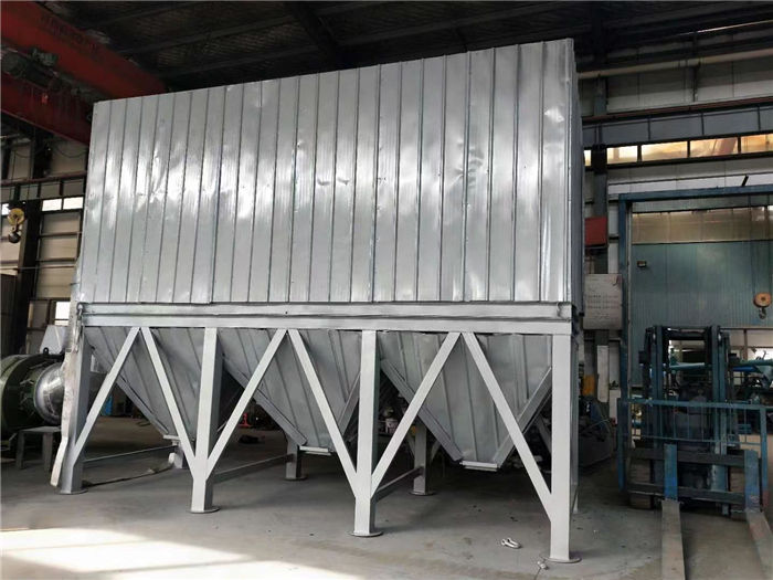 該設備為多袋式脈沖除塵裝置,當含塵氣體由進風口進入除塵器,首先碰到進出風口中間的斜板及擋板,氣流便轉向流入灰斗,同時氣流速度放慢,由于慣性作用,使氣體中粗顆粒粉塵直接流入灰斗。起預收塵的作用,進入灰斗的氣流隨后折而向上通過內部裝有金屬骨架的濾袋粉塵被捕集在濾袋的外表面,凈化后的氣體進入濾袋室上部清潔室,匯集到出風口排出,含塵氣體通過濾袋凈化的過程中,隨著時間的增加而積附在濾袋上的粉塵越來越多,增加濾袋阻力,致使處理風量逐漸減少,為正常工作,要控制阻力在一定范圍內(140--170毫米水柱),必須對濾袋進行清灰,清灰時由脈沖控制儀順序觸發各控制閥開啟脈沖閥,氣包內的壓縮空氣由噴吹管各孔經文氏管噴射到各相應的濾袋內,濾袋瞬間急劇膨脹,使積附在濾袋表面的粉塵脫落,濾袋得到再生。清下粉塵落入灰斗,經排灰系統排出機體。由此使積附在濾袋上的粉塵周期地脈沖噴吹清灰,使凈化氣體正常通過,保證除塵系統運行。