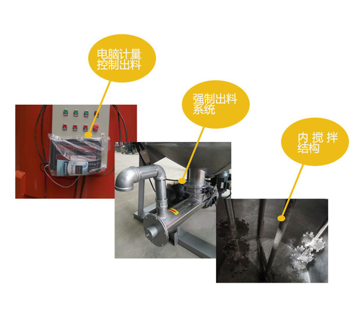 立式膩子膏攪拌機內有高速分散盤,采用高速分散低速攪拌的原理,使物料攪拌較快較均勻,電動出料,輕輕一踩腳踏開關即可放出攪拌好的物料,內加刮板,攪拌葉片與桶壁間隙小,殘留較少,出料較干凈。干粉原材料由螺旋上料機上料,液體可以由水泵上料,使用方便,大大降低了勞動強度,提升了生產效率。可根據不同物料的實際需求定制碳鋼及不銹鋼材料。